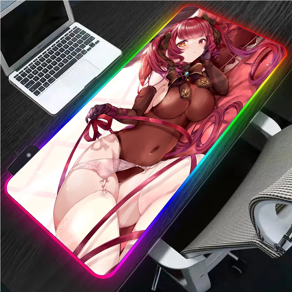 In Stock - Sexy Pink Big Tits Girl Anime RGB Mouse XXL Game Accessories Luminous LED Sexy Pad USB Laptop Keyboard Office Pad Gamer Mousepad